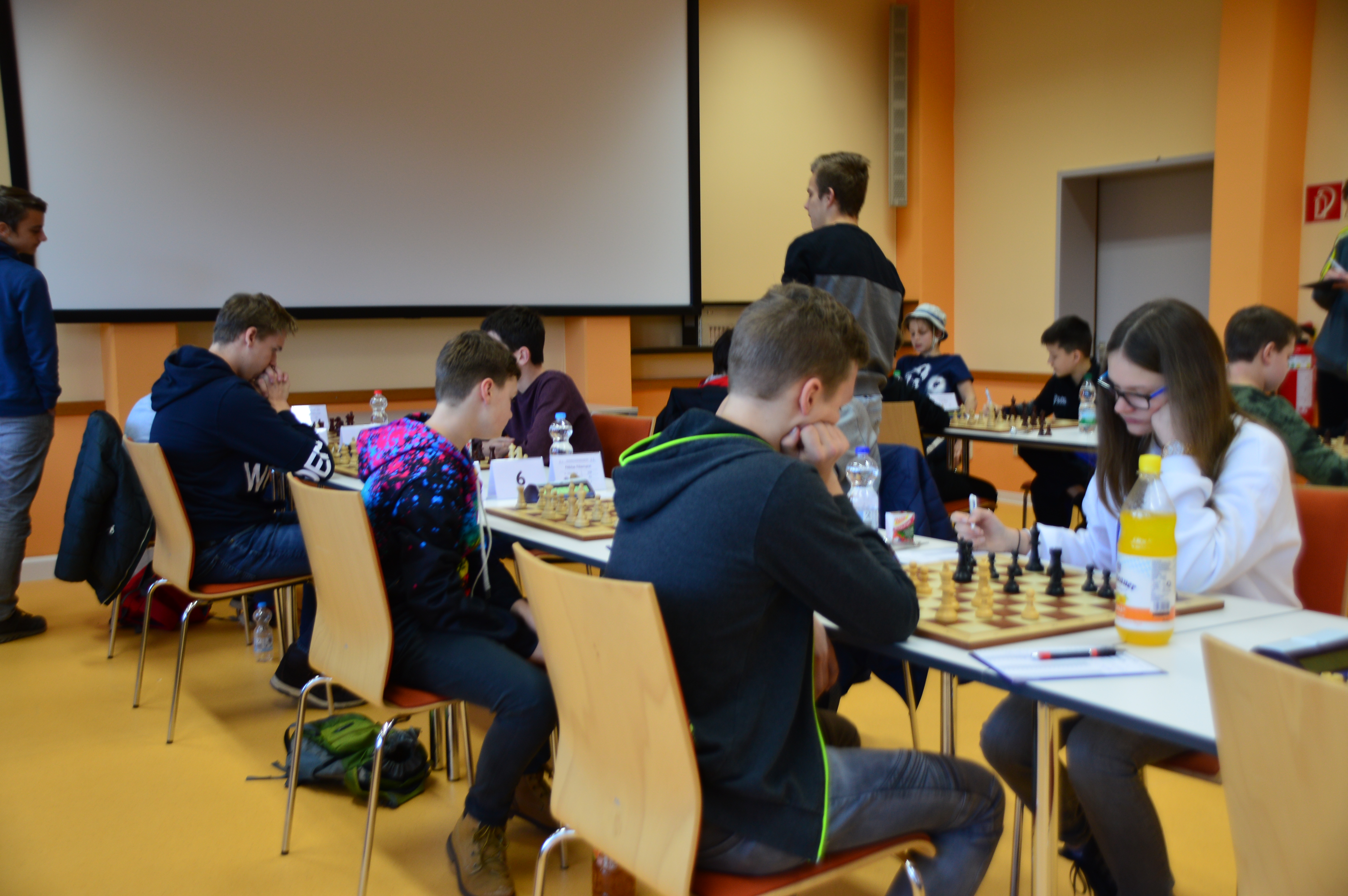 Es ist schon ein beeindruckendes Bild, das sich im Turniersaal auf Schloss Schney bietet: Bei 82 Denksportlern rauchen seit heute die Köpfe. Am Start sind 53 Erwachsene, sechs Spieler in der U18, 14 in der U16 und neun in der U14. Die Königsklasse der Jugend spielt wieder im Erwachsenen-Feld mit, das damit so groß ist wie seit vielen Jahren nicht mehr. Die U18 schrammte knapp am eigenständigen Turnier vorbei, da ein Teilnehmer krankheitsbedingt absagen musste.